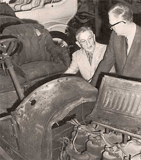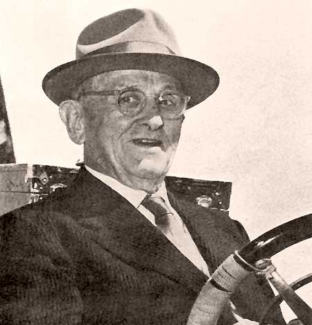 ![]() Fifty-six years after the historic race, George Schuster sits behind the wheel of the Thomas Flyer in Reno, Nev. (Photo Credit to Western History Research Center, University of Wyoming) |