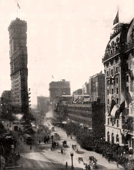 The Zust, the Protos and the De Dion lined upon Broadway, |